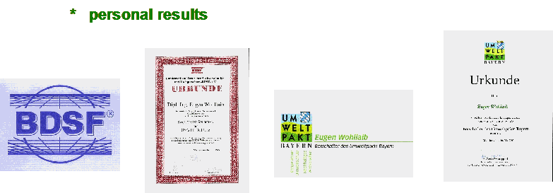 - Botschafter des Umweltpakt Bayern- Sachverständiger für Umweltschutz (BDSF)